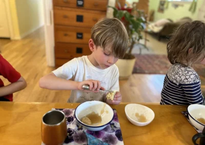 We are in school Monday through Thursday 8:30-3:30. Our relaxed daily sequence of expansive and contractive activities helps the children breathe deeply into their school day.
